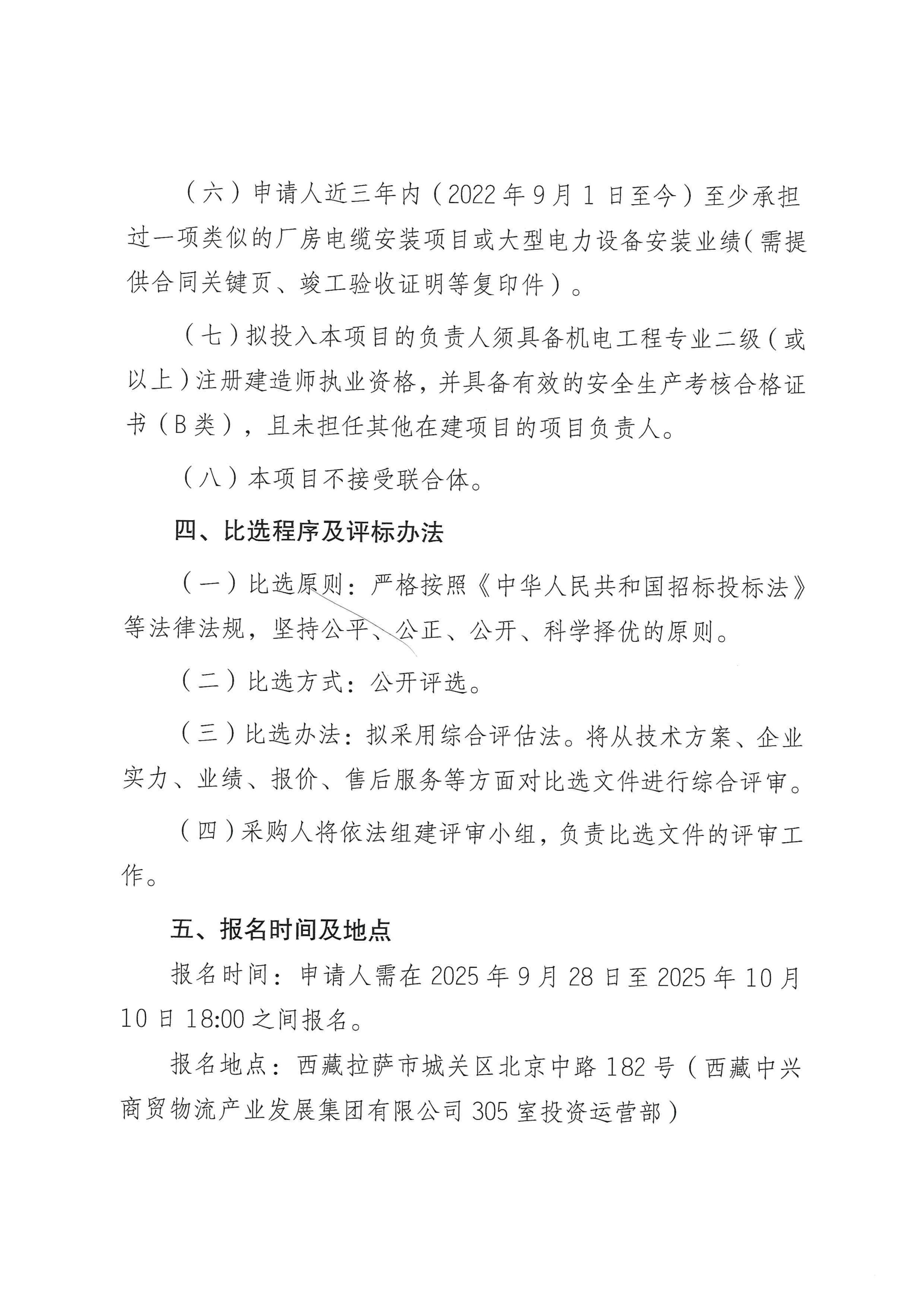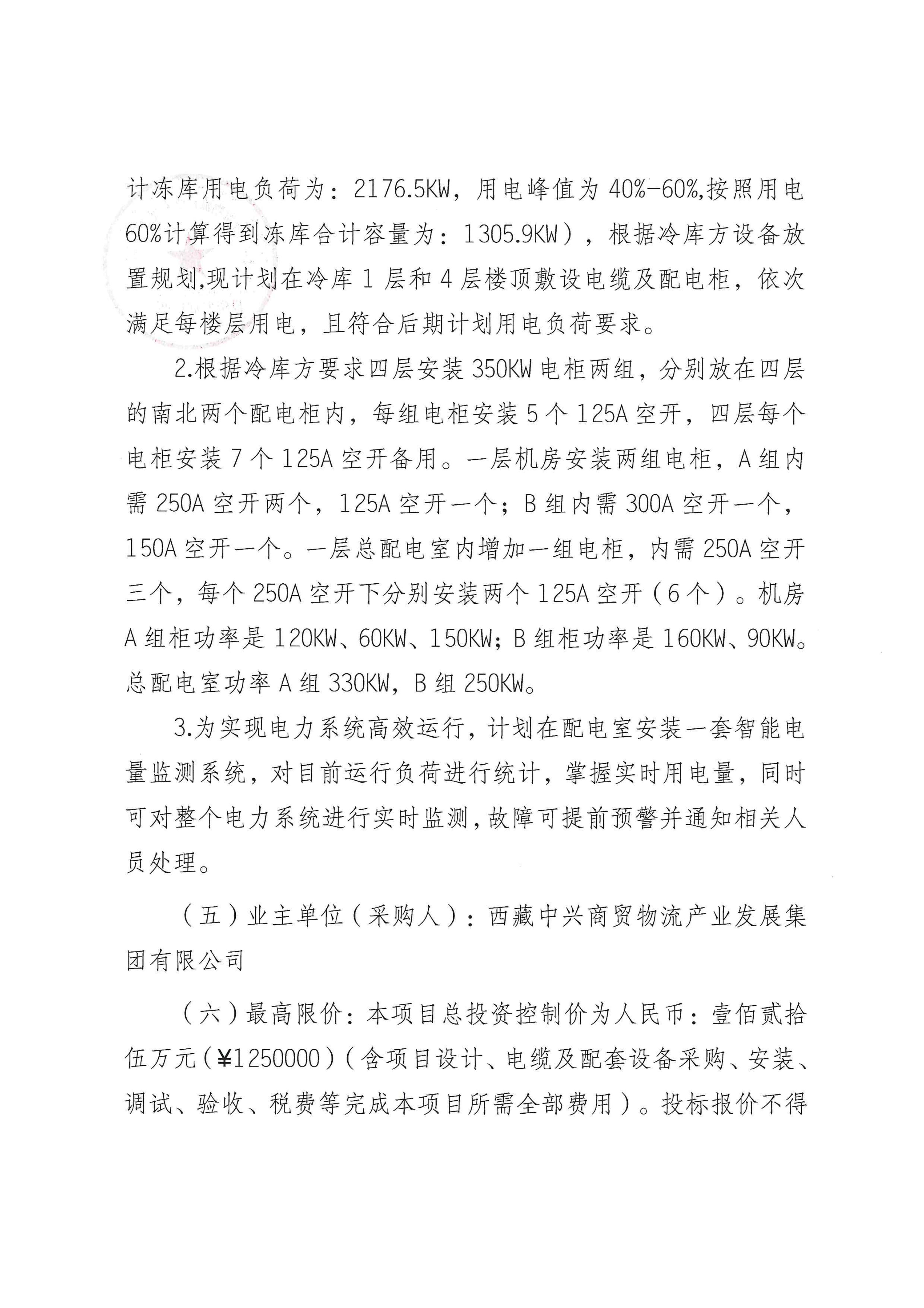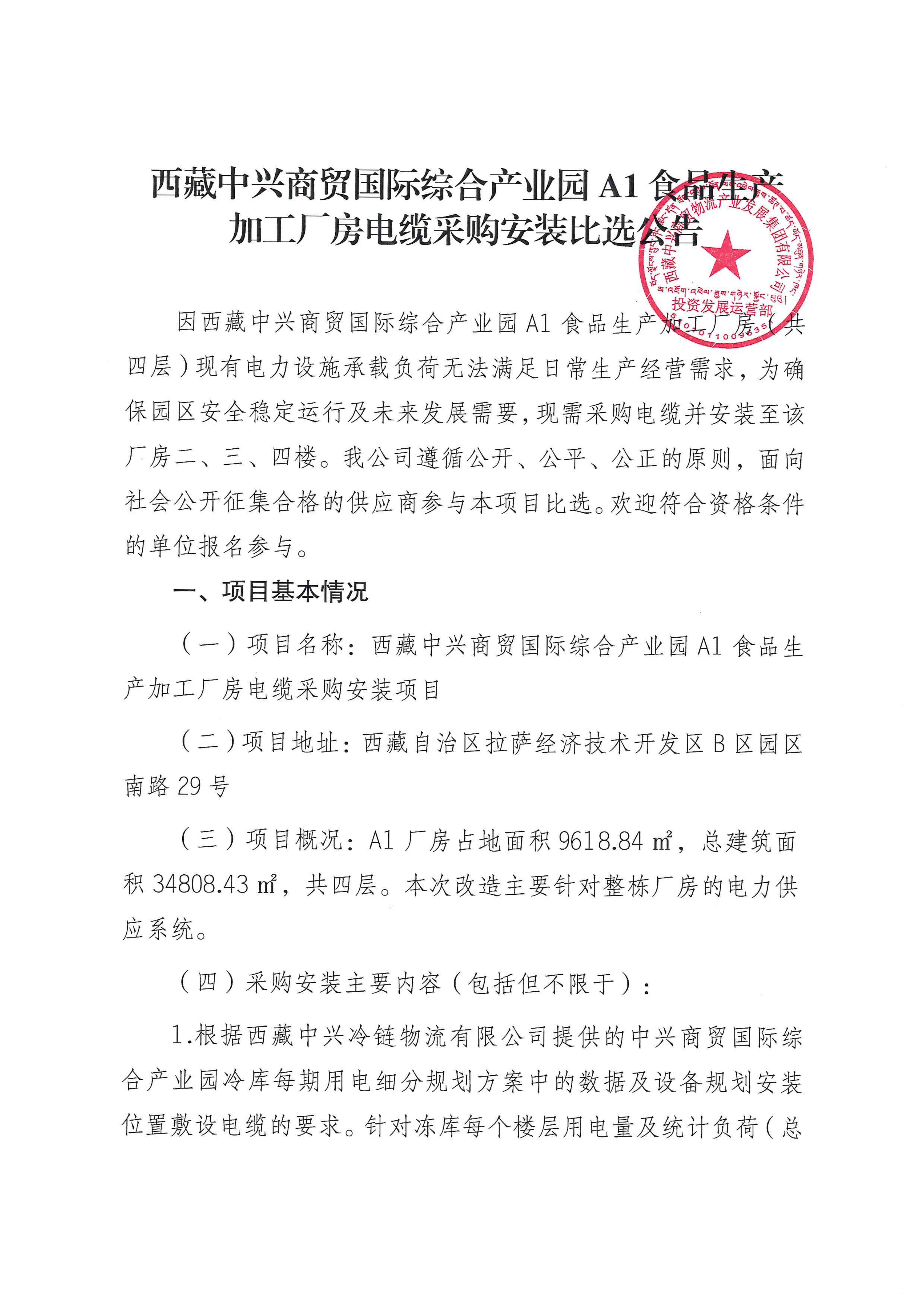 西藏中興商貿(mào)國際綜合產(chǎn)業(yè)園A1食品生產(chǎn)加工廠房電纜采購安裝比選公告